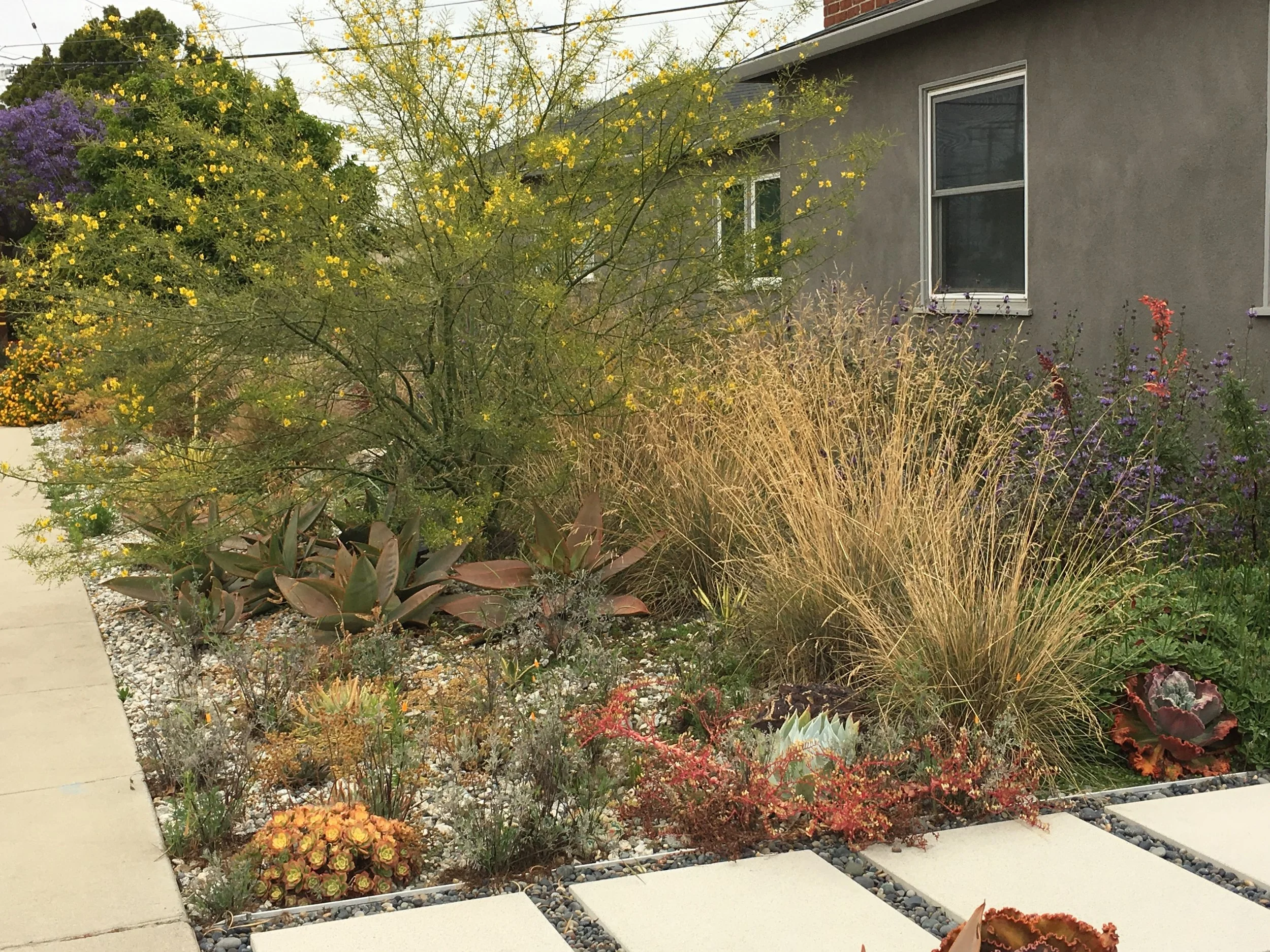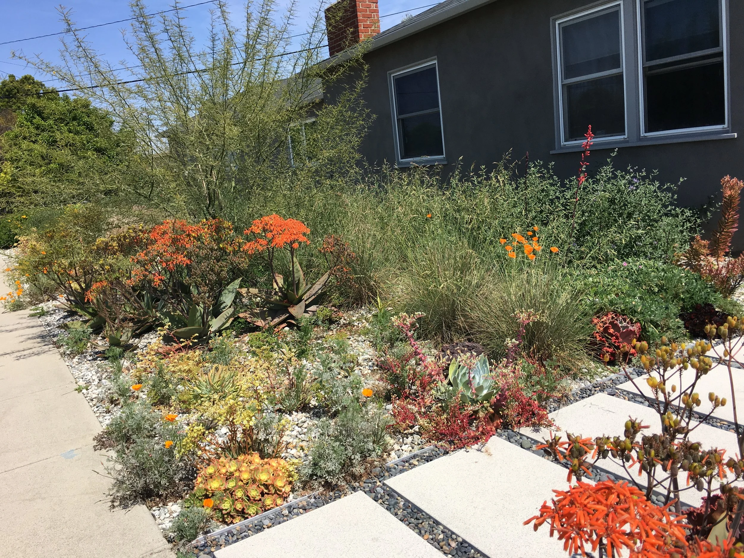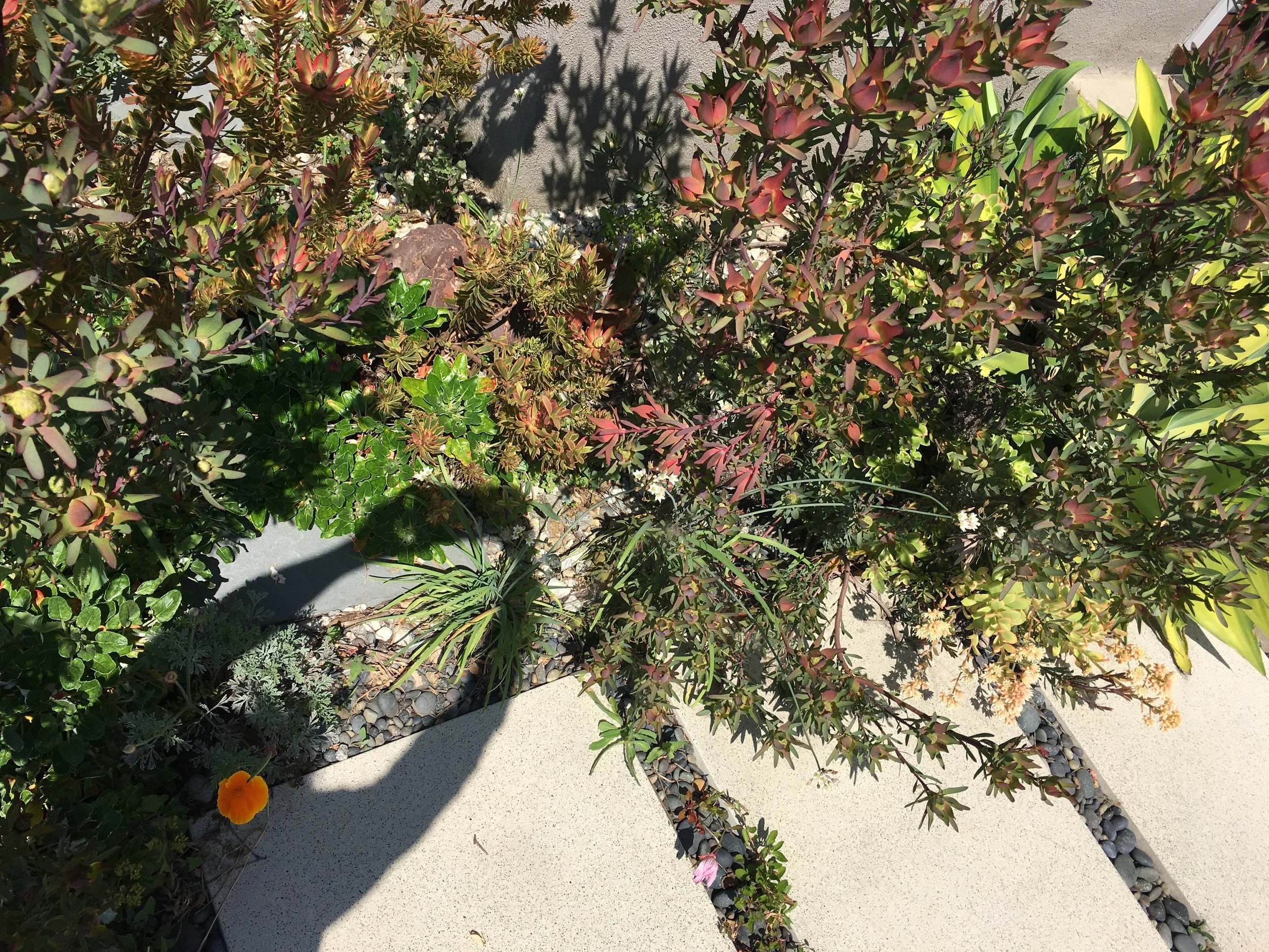 A Southern California test plot for gathering knowledge of climate-adapted plants, garden tolerance of natives, develop habitat corridors, and refine sustainable maintenance practices. Neighbors are invited to pluck and sniff and nest.