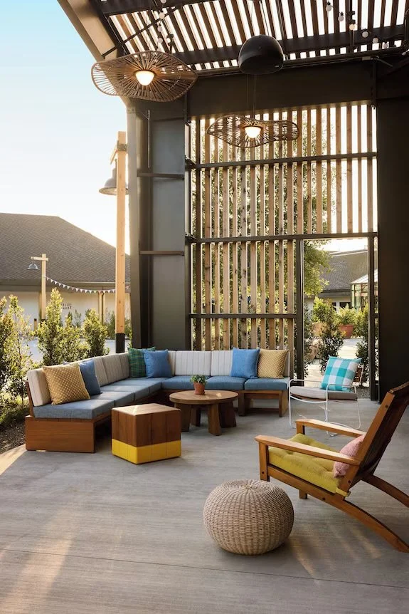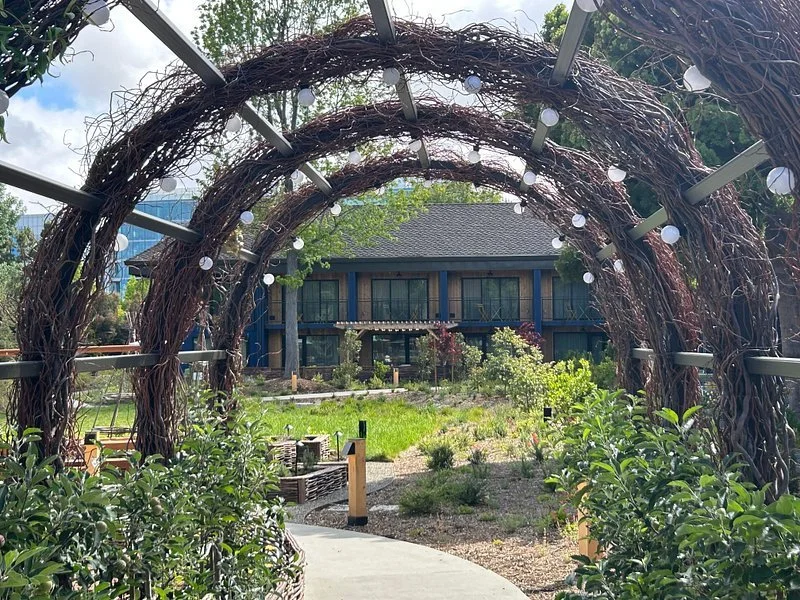 Embracing an origin story of the Edible Eclectic, the Treehouse Hotel is filled with botanical riches that honor the site's agricultural past, from fruit orchards and backyard gardens to historical oak woodlands and foraging grounds. On this 7+ acre adaptive reuse campus, over 120 mature trees have been protected and over 300 new trees planted, including native Oaks, Redbud, Toyon, Redwoods, and an abundance of fruiting trees. Under the layered tree canopy, guests can wander and forage on huckleberries and kumquats as they travel to the farm-to-table restaurant, where garden beds overflow with ripening vegetables and herbs. 254 keys